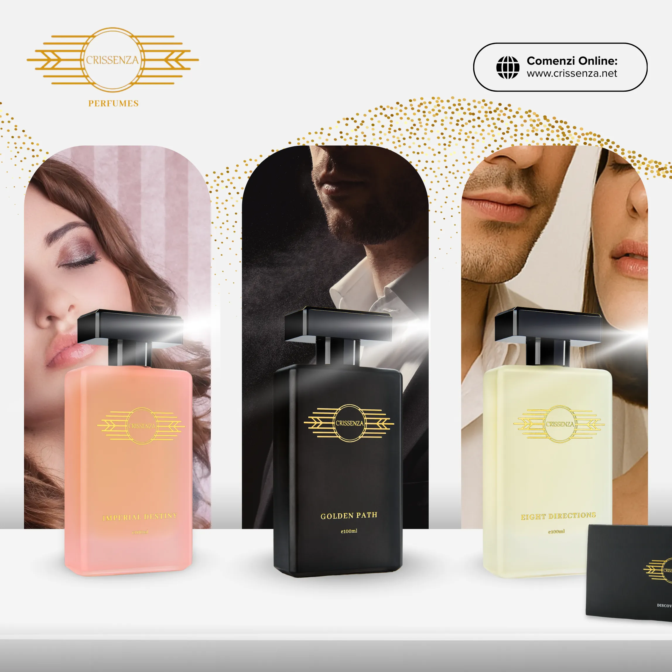 Descoperă colecția Crissenza în format de mostre practice. Trei stiluri complementare — floral-gourmand (Imperial Destiny), condimentat-lemnos (Golden Path) și unisex gourmand (Eight Directions) — în concentrație EDP, pentru a testa proiecția și persistența pe pielea ta, în contexte diferite. Conține 3 mostre - 1ml/mostră, ideale pentru alegerea versiunii full-size sau pentru un cadou rafinat.